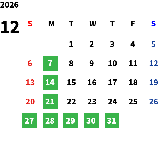 その他の定休日は営業日カレンダーをご確認ください。