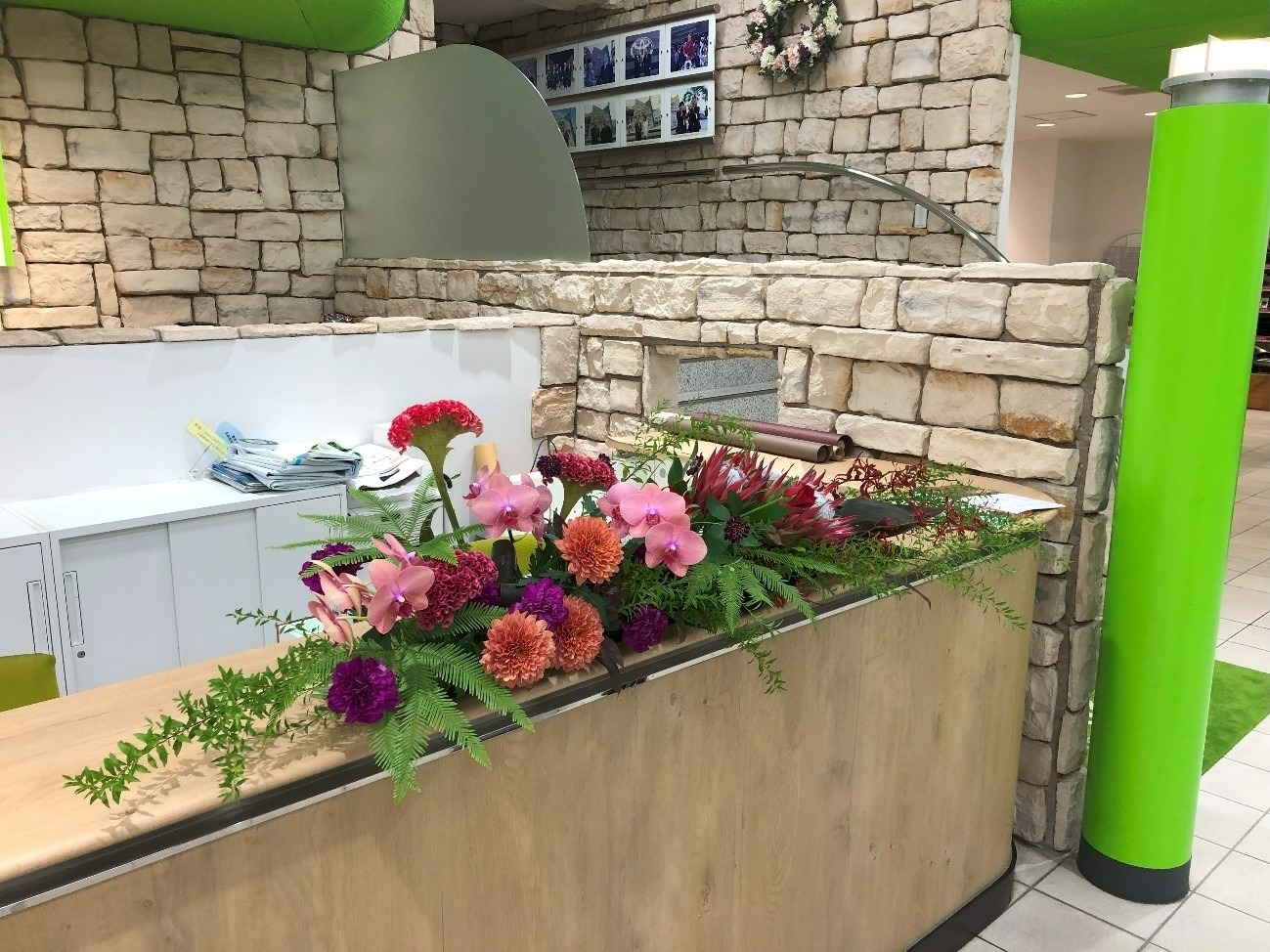 田原本店では現在、受付入り口に生け花を飾っております🌸