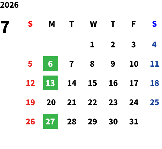 営業日カレンダー